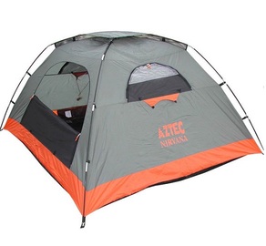 אוהל מקצועי אצטק נירוונה aztec nirvana 4 אוהל איגלו מרווח ונוח, כניסה מרווחת עם כילה, שלושה חלונות ופתח אוורור עליון לאוורור מקסימלי. האוהל עשוי בד פוליאסטר Rip-Stop, נגד קרעים. בד האוהל מצופה PU דוחה קרני שמש ומים. לאוהל 2 מוטות פיברגלס(9.7 מ"מ). מגיע עם יתדות וחבלי מתיחה למתיחת האוהל וייצוב מירבי. לאוהל מבנה מרובע שמגדיל את הנפח הפנימי בתוך האוהל. ניתן לרכוש כיסוי מלא נגד גשם אשר הופף את האוהל מתאים ל 3 עונות למטייל.
