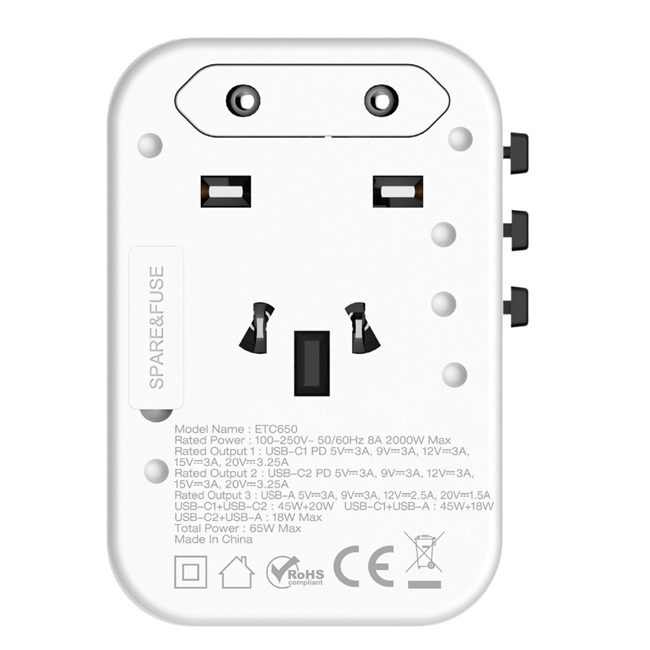 מטען נסיעות מושלם לטיול ברחבי העולם מבית המותג Energizer. תפוקה כוללת עוצמתית של 65W, שתי יציאות USB-C ויציאת USB-A, תומך במגוון שקעים בינלאומיים ומספק אפשרויות טעינה גמישות. אידיאלי לטעינה מהירה של מחשבים ניידים, טאבלטים וסמארטפונים. יציאת ה-USB-A מושלמת לטעינת גאדג'טים קטנים יותר כמו אוזניות וסוללות ניידות. קומפקטי, אמין, חזק ונוח, תומך במתח אוניברסלי (100–250V) לנסיעות בכל רחבי העולם.